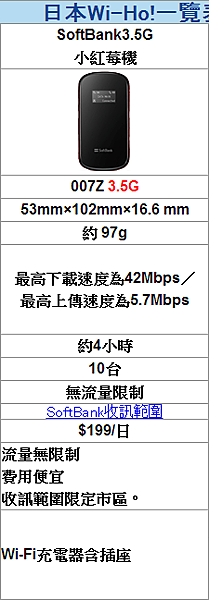 Wi-Ho!是特樂通股份有限公司(Telecom Square)提供的各國行動上網租借服務,這次我租的是最熱門便宜的機型SoftBank3.5G小紅莓機。